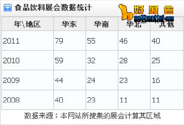 這項數據顯示同時期,不同地區的食品展會都呈增長趨勢,尤其是華東地區。這跟華東地區的發展是離不開的,也將顯示未來,華東地區將是食品飲品的根據地。