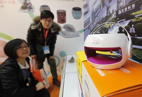 3月14日,第25屆中國(guó)北京國(guó)際禮品、贈(zèng)品及家庭用品展覽會(huì)在北京國(guó)際展覽中心開幕。這是觀眾在參觀太陽能藍(lán)牙音箱。本屆展會(huì)為期4天,展出面積4萬平方米,吸引約1200家企業(yè)參展。展品包括工藝品、紀(jì)念收藏品、商務(wù)禮品、文化用品和家居用品等。