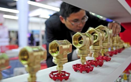 3月22日,一位參展觀眾觀看展示的閥門。當日,第十三屆中國東北國際給排水、水處理技術設備及泵、閥、管道展覽會在沈陽工業展覽館開幕。展會設排水技術及設備、制水技術及設備、水處理技術與設備、管道、閥門、泵等展區。“東北水展”不僅吸引了全國各地區的參展商和觀眾,而且也為日本、韓國等鄰國客商提供洽談平臺。
