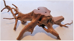 根據(jù)我們的實(shí)踐體會(huì),一個(gè)完美的花架,應(yīng)該體現(xiàn)“四個(gè)字”,即“大、小、多、少”。大:即面子要大,易于擺放飾品;“小”即根雕一般都有節(jié)疤,有節(jié)疤是好事,顯得蒼勁,但節(jié)疤要小,過大影響整體形象;“多”即“腳”要多,既有平穩(wěn)感,又有藝術(shù)美感;“少”指“手”要少,上面“手”太多,既影響美感,又影響飾品擺放。