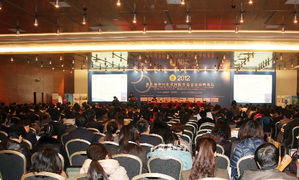 2012年3月27日-28日,由北京食品學會和北京食品協(xié)會聯(lián)合主辦,太平洋國際展覽有限公司承辦的“第五屆中國北京國際食品安全高峰論壇”在北京國家會議中心圓滿召開。來自國內(nèi)外的知名食品企業(yè)、政府監(jiān)管部門、科研院校等眾多專業(yè)代表歡聚一堂,針對食品安全領(lǐng)域的最新技術(shù)、熱點難點問題展開了深入的探討交流。大會總的參會人數(shù)突破1000人以上,是歷年來參加人數(shù)最多的一屆會議。