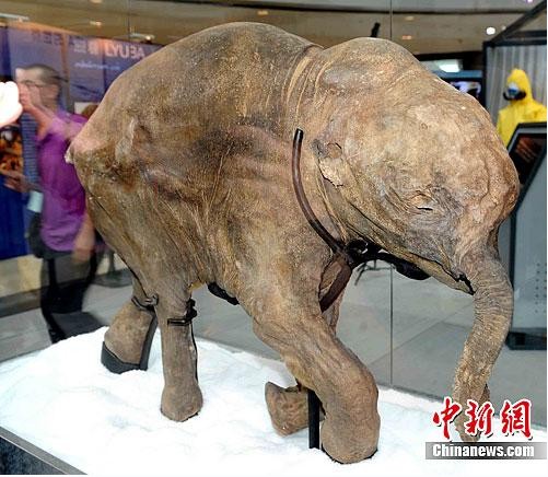 冰封了4.2萬年的俄羅斯小長毛象遺骸Lyuba4月12日起在香港國際金融中心商場展出??脊艑W家指,研究Lyuba有助于復活長毛象的夢想實現(xiàn)。(來源:中新網(wǎng))