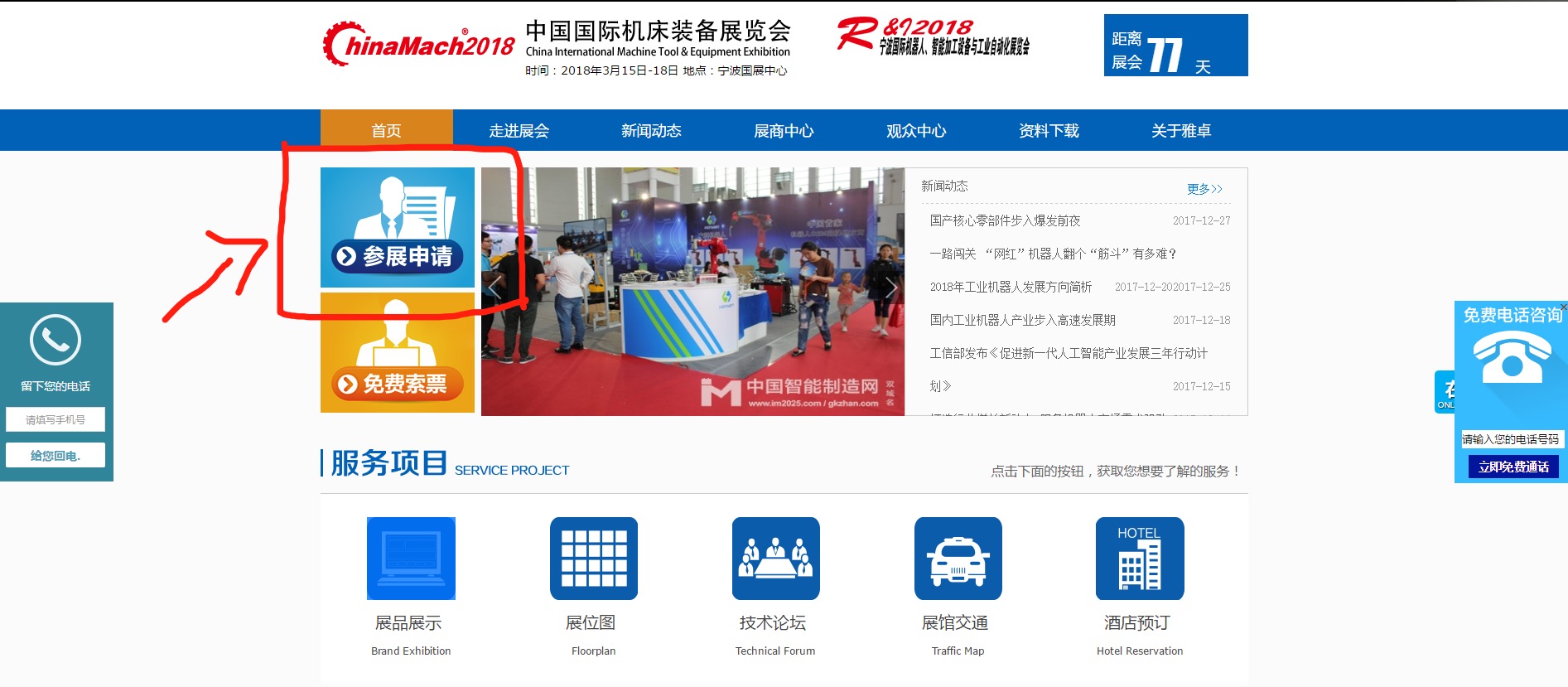 1、進入2018中國國際機床裝備展覽會官方網站(http://www.chinamaching.cn/)