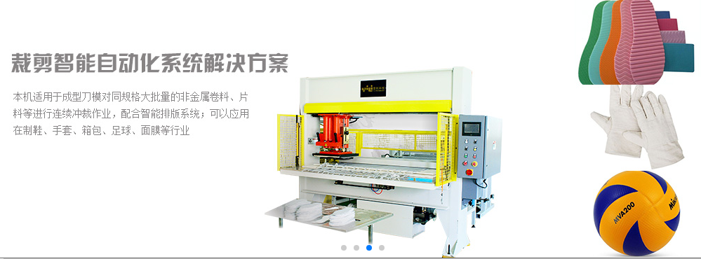 本類機器適用于:不同規格刀模對同規格、大批量、各種非金屬卷料?片料材料,進行連續沖裁作業。可運用于體育用品、磨料磨具、醫藥器材、服裝鞋帽、文化用品等行業。采用伺服電機控制沖頭的橫行移動、旋轉運動,同時自動換刀機構,大大提高設備利用率及多品種產品的需要。機器采用紅外線精準對位,充分合理的利用材料,減少不必要的損耗,適用于一層或多層材料的裁剪。材料對位后機器按下操作按鈕氣缸夾緊然后伺服馬達帶動高精度絲桿按用戶設定的尺寸要求送料,機器自動完成對材料的沖裁。沖頭位移的距離和進料的長度可在人機界面精確設定,解決了送多層材料時的材料分層,長度不準問題。具有手動、半自動、自動多種工作模式,工人只需要撿拾成品材料,減輕了勞動強度,提高了工作效率。具有錯位、錯位減刀、刀模轉位等沖裁模式,可套取材料,節約原材料10%-15%。由于本機采用微電腦控制,自動化程度高,整機只需一名工人,生產效率可提高6-8倍,節約電能近1/3。特有的設定結構,配合裁斷刀高度設定,使沖程調整方便、準確。電腦自動排版,實現多種刀模的自動沖裁. 工控控制,具有連續長時間工作能力,存儲量大,較強的抗干擾能力的特點. 特殊規格可定制。