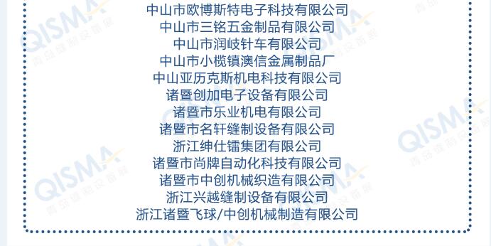縫紉機整機、刺繡設備、絎縫/絎繡、激光設備、雕刻設備、激光打標機、充絨機/充棉機、模板機、中厚料設備、制帽設備、家用設備、超聲波設備;