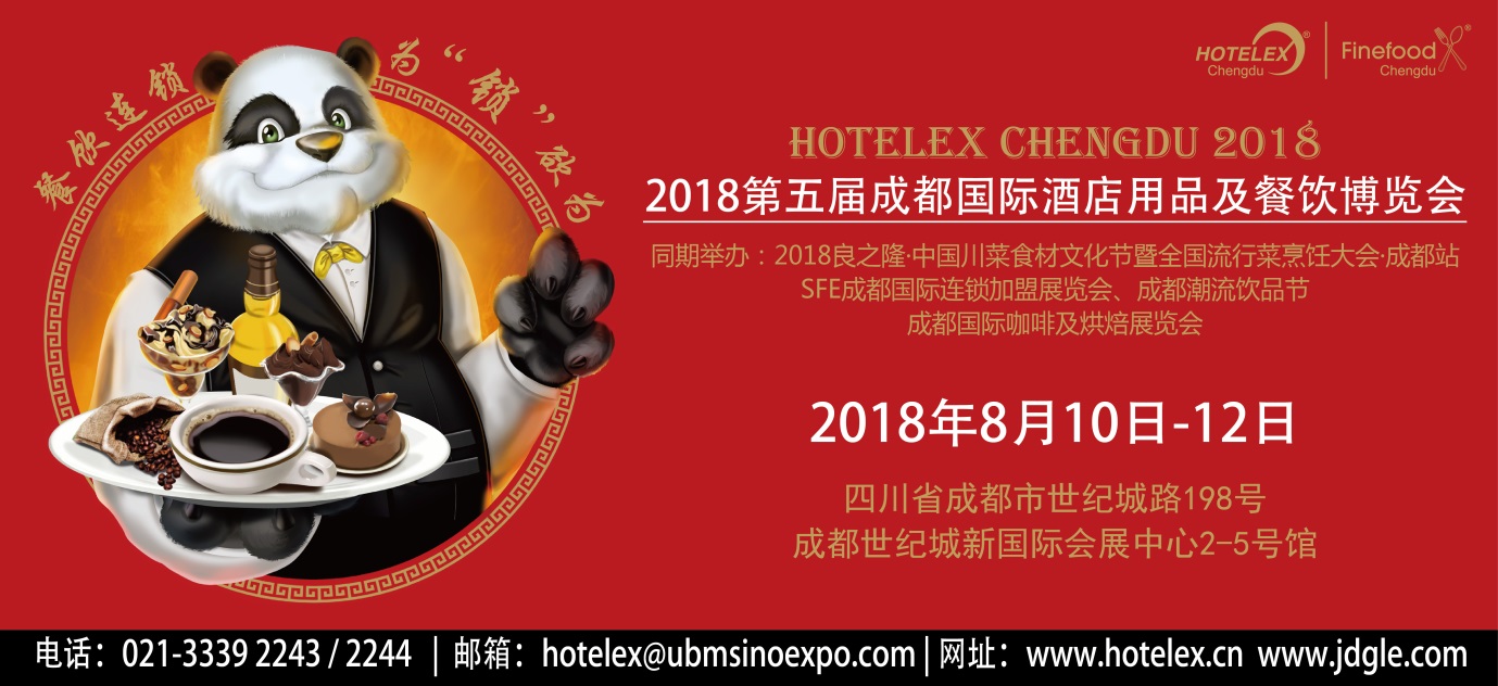 第五屆成都國際酒店用品及餐飲博覽會(簡稱:HOTELEX Chengdu 2018)將于2018年8月10日至12日在成都世紀城新國際會展中心2-5號館舉行(四川省成都市世紀城路198號)。同期還將舉辦2018良之隆中國川菜食材文化節(jié)暨全國流行菜烹飪大賽-成都站、SFE成都國際連鎖加盟展覽會、成都潮流飲品節(jié)以及成都國際咖啡及烘焙展覽會。作為上海國際酒店及餐飲業(yè)博覽會的地方展,立足四川蓉城,輻射西南地區(qū),旨在為客戶提供最豐富優(yōu)質(zhì)的選擇。
