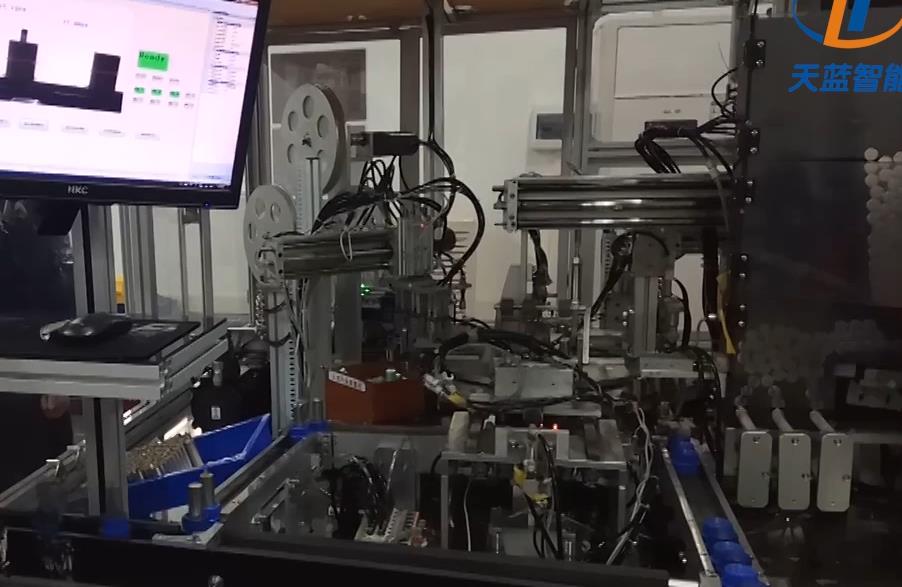 電芯入殼--既電芯裝入鋼殼的過程。天藍(lán)智能的入殼機(jī),采用功能模塊化設(shè)計(jì),配備多功能圖像識(shí)別、360%無極激光測(cè)控技術(shù)以及柔性輸送線,可實(shí)現(xiàn)單機(jī)雙工位凸輪連桿傳動(dòng),兼容單雙極耳卷芯,確保無損傷同軸導(dǎo)向入殼。