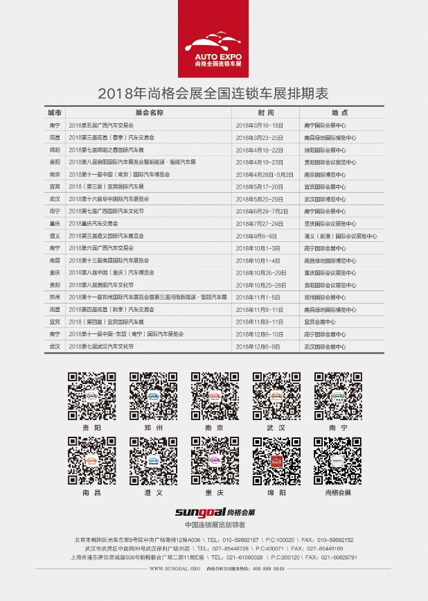 尚格會(huì)展,勵(lì)精圖治23年,在武漢、南京、南昌、鄭州、貴陽、遵義、綿陽、宜賓、重慶、南寧等十余城市,每年舉辦20余場(chǎng)車展,年組展面積超100萬平方米,尚格以“夸父逐日”的精神持續(xù)探索著行業(yè)。近年來車市緩增,會(huì)展業(yè)同質(zhì)化嚴(yán)重,在此巨大的商戰(zhàn)變革中,尚格逆勢(shì)突圍、撥亂反正,穩(wěn)坐中國(guó)二三線城市車展的龍頭交椅。限量免費(fèi)搶票瘋狂進(jìn)行中,點(diǎn)我點(diǎn)我。