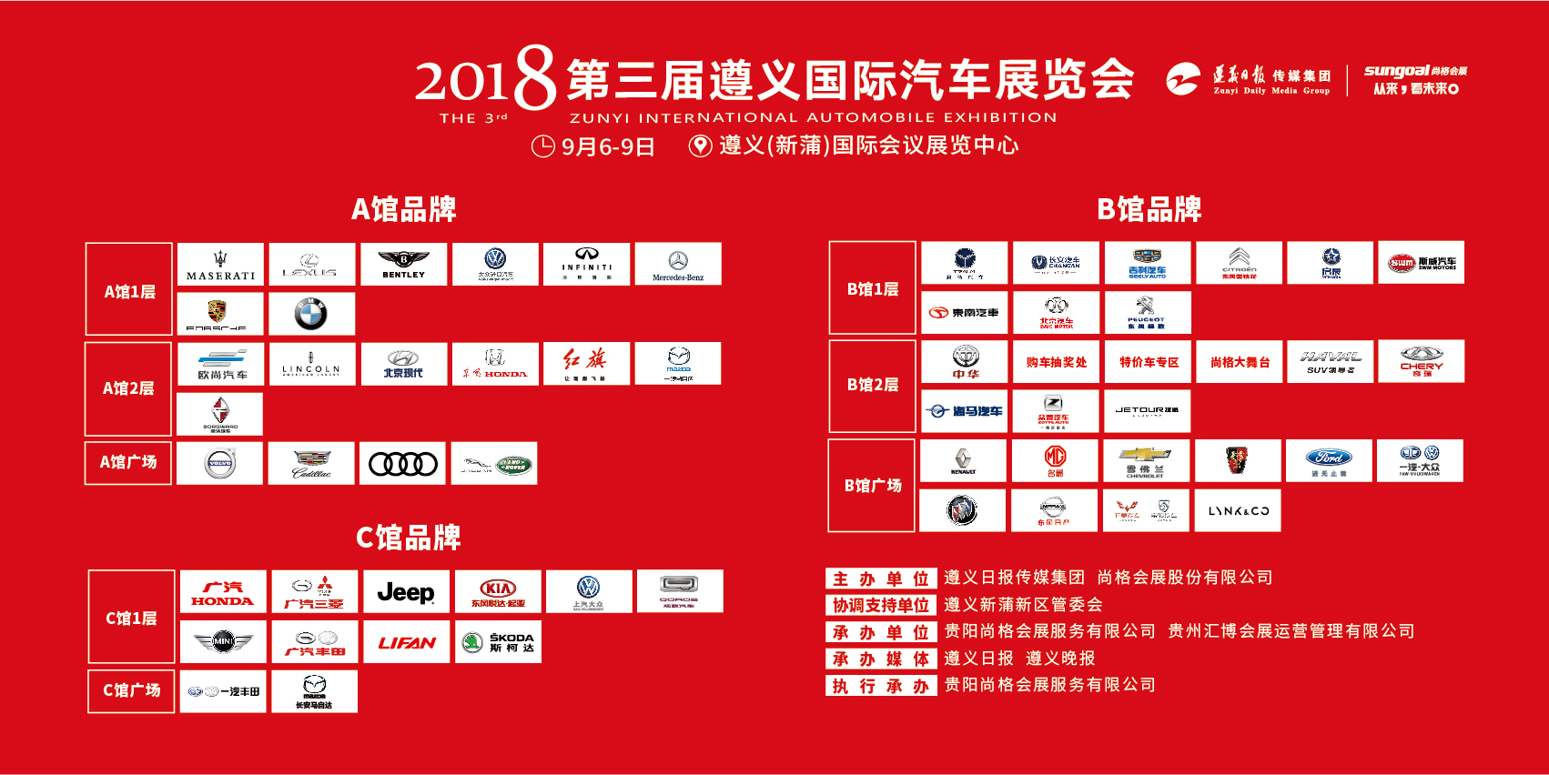 2018年9月6-9日,第三屆遵義國際汽車展覽會(huì)(以下簡稱“遵義國際車展”),在遵義(新蒲)國際會(huì)議展覽中心盛大舉行。本屆車展由遵義日報(bào)傳媒集團(tuán)、尚格會(huì)展股份有限公司主辦,新蒲新區(qū)管委會(huì)協(xié)調(diào)支持,貴陽尚格會(huì)展服務(wù)有限公司、貴州匯博會(huì)展運(yùn)營管理有限公司共同承辦,遵義日報(bào)、遵義晚報(bào)作為承辦媒體,貴陽尚格會(huì)展服務(wù)有限公司執(zhí)行承辦。新一屆的遵義國際車展為廣大市民帶來更多時(shí)尚、創(chuàng)新的汽車消費(fèi)體驗(yàn)。