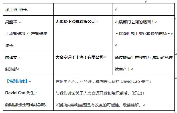 延續在日本舉辦30余年以來的傳統,GMCA論壇曾于日本福岡、名古屋、仙臺以及泰國曼谷舉辦多次并大獲成功。我們將會邀約各個行業龍頭企業活躍在制造現場的一線監督員通過分享實踐管理的經驗以及日本各大知名企業高層作為評審員對優秀企業進行表彰,更有中日兩國優秀個例交流活動,希望通過此次活動展示交流更優秀的制造業管理水平、更先進的制造業現場技術,旨在通過分享探討,使中國制造業能夠通過智能制造以及高新技術的快速發展,提升并加快企業的轉型升級!