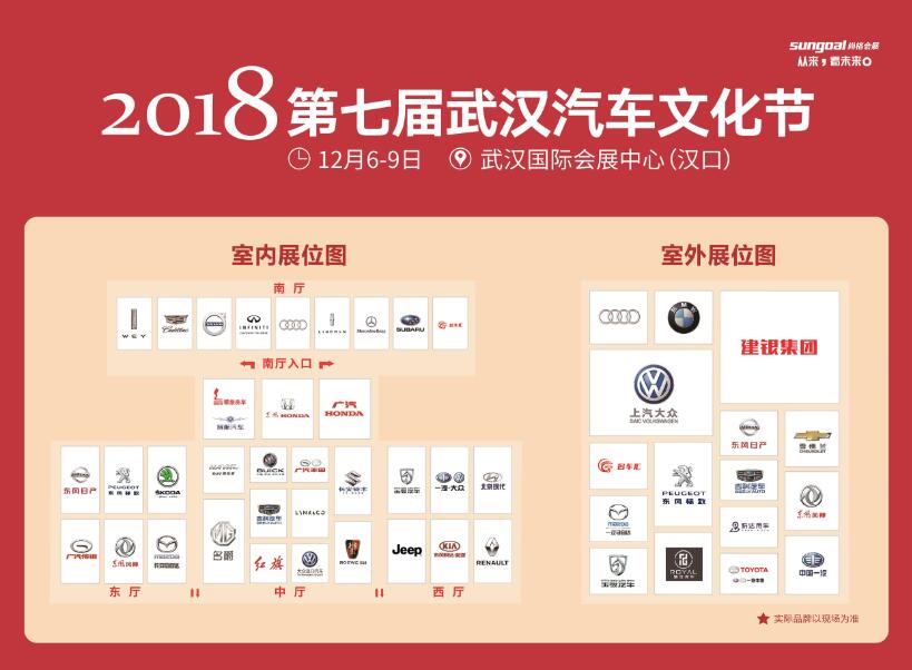 每年武漢汽車文化節都聚集了大量的熱銷車及新車,車展也是一場品牌經銷商競爭的大型戰場,本屆車展共啟用武漢國際會展中心東廳、中廳、西廳、南廳以及室外廣場,展出總面積達2萬平方米。這一年末車市盛宴品牌齊全,車型眾多,將集合60多家國內外知名汽車品牌,超300款熱銷車型,不管是德系、美系、法系、日系、韓系還是國產品牌,你都可以找到中意車型。車展吸引了賓利、勞斯萊斯、瑪莎拉蒂、阿爾法·羅密歐、路虎、凱迪拉克、沃爾沃、英菲尼迪、奧迪、林肯、奔馳、寶馬、進口大眾、斯巴魯、紅旗、廣汽菲克、上汽大眾、一汽大眾、東風本田、東風日產、東風雷諾、廣汽本田、廣汽豐田、北京現代、長安馬自達、一汽馬自達、一汽豐田、雪佛蘭、別克、東風悅達起亞、斯柯達、長安鈴木、WEY、領克、廣汽傳祺、東風風神、哈弗、MG、榮威、吉利、寶駿、一汽森雅、諾優房車、大通房車、旌航房車、順旅房車等品牌強勢參展。大部分品牌廠家直接參展,帶來超大展具及廠家御用車模亮相現場,他們將拿出車展專享價,推出車展限量特價車,加大活動力度,準備打一場漂亮的戰役。