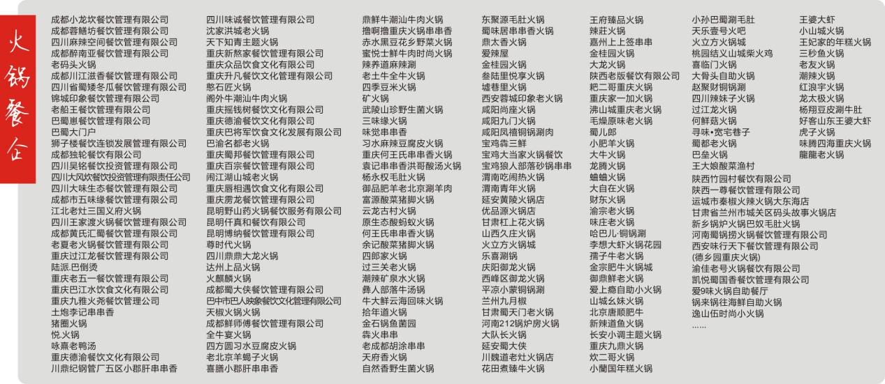 附:海名第八屆成都餐飲火鍋食材用品展4月地推市場名錄: