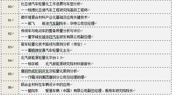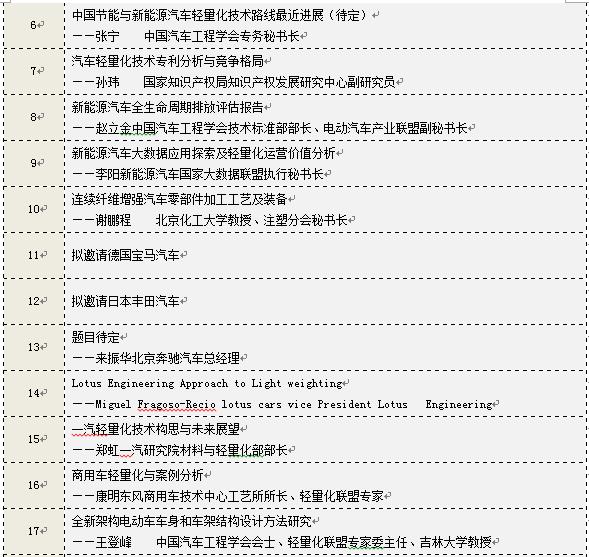 其中,正在與工信部、科技部、廈門金龍、城都大運(yùn)、中通客車、北汽動(dòng)力總成、賽麟汽車、漢騰汽車、福特汽車、本田汽車,以及一汽、東風(fēng)、長(zhǎng)安、江淮、上汽等底盤部門匯報(bào)和商談參會(huì)事項(xiàng),同時(shí),擬邀請(qǐng)德?tīng)柛!⑽鏖T、麥格納、大陸、延鋒、敏實(shí)、奇昊、偉世通、濰柴等全球汽車零部件百?gòu)?qiáng)中20多家零部件企業(yè),預(yù)計(jì)本次參加汽車輕量化大會(huì)的中大型汽車企業(yè)有60多家,全球汽車零部件百?gòu)?qiáng)中有50多家零部件企業(yè)。