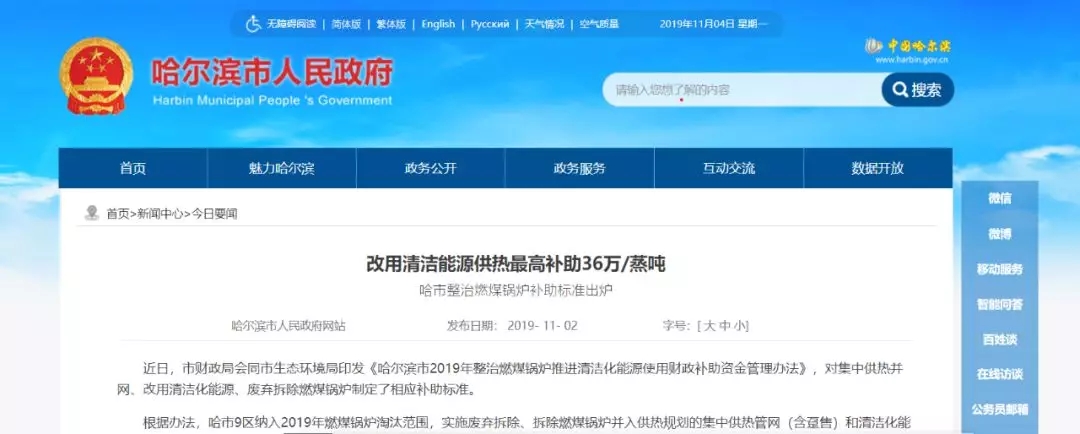 去年哈爾濱市財(cái)政局會(huì)同哈爾濱市生態(tài)環(huán)境局印發(fā)《哈爾濱市2019年整治燃煤鍋爐推進(jìn)清潔化能源使用財(cái)政補(bǔ)助資金管理辦法》,對(duì)集中供熱并網(wǎng)、改用清潔化能源、廢棄拆除燃煤鍋爐制定了相應(yīng)補(bǔ)助標(biāo)準(zhǔn)。