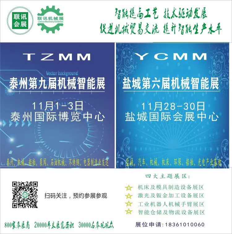 “2020中國泰州第九屆國際機械與智能制造展覽會“將于2020年11月1-3日在泰州國際博覽中心盛大舉行!作為2020下半年蘇中蘇北地區(qū)唯一大型機械行業(yè)展會,是您開發(fā)高速發(fā)展的蘇中市場首選展會平臺。我們2019年的機械展有約350 名參展商,800個展位和25000名采購商,吸引了包括美國哈斯,美國哈挺,美國辛辛那提,韓國斗山,日本發(fā)那科,日本津上,臺灣協(xié)鴻,海天精工,南通科技,力星激光,嘉泰激光,漢鋒自動化,大華激光,捷豹空壓機等眾多知名品牌。在我們的不懈努力下,2020年的展會預(yù)計有約400家參展商,1000個展位和近30000名的采購商,是您不容錯過的工業(yè)盛宴!