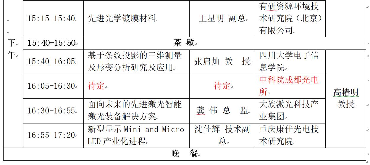 參與人員:四川省光學學會、陜西光學學會、重慶市光學學會,云南省光學學會 理事長,副理事長和秘書長。