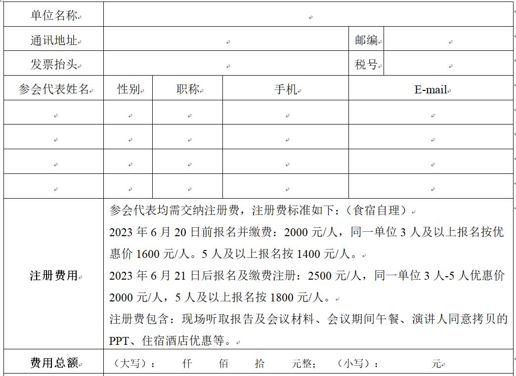 2023年6月20日前報名并繳費:2000元/人,同一單位3人及以上報名按優惠價1600元/人。5人及以上報名按1400元/人。