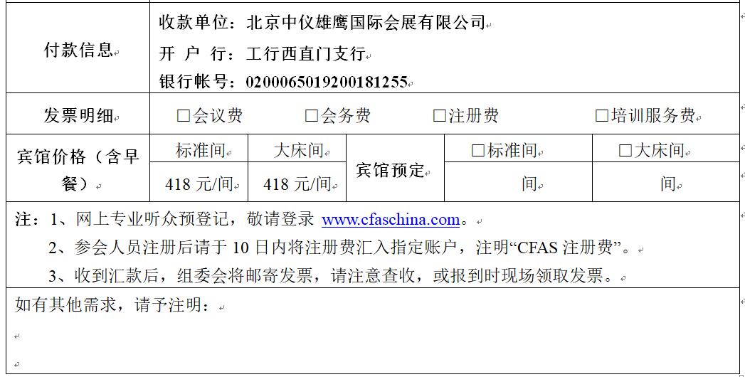 請詳細填寫以下“回執注冊表”,傳真或者郵件回傳,郵箱:cfas@lanneret.com.cn或280251967@qq.com 傳真:010-82967471 聯系人:于健 13439755593