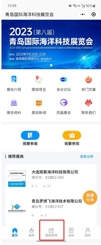 點擊展商秀底邊欄中央的【我要參會】按鈕,直接報名參加青島??普?,避免現場登記注冊麻煩。提前預登記的觀眾還可以享有免費午餐等展會特權!