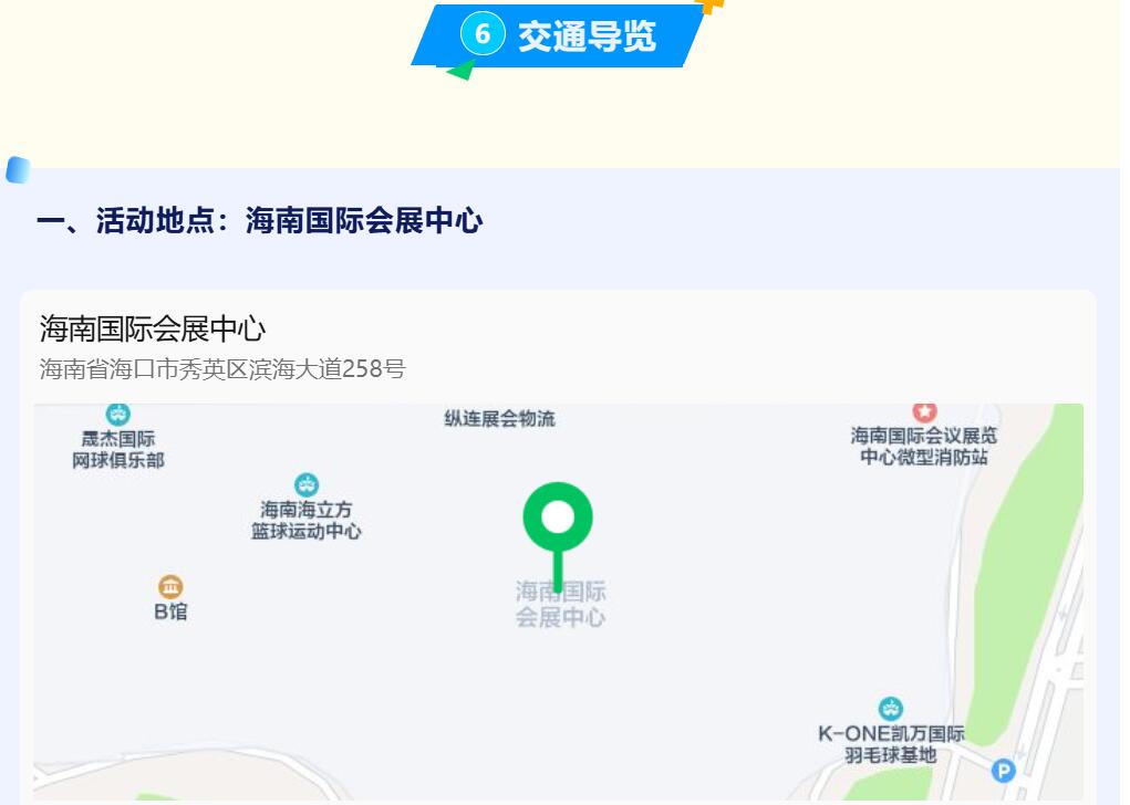 1.海口市新海港碼頭—海南國際會展中心距離約6.3公里,車程約12分鐘;
