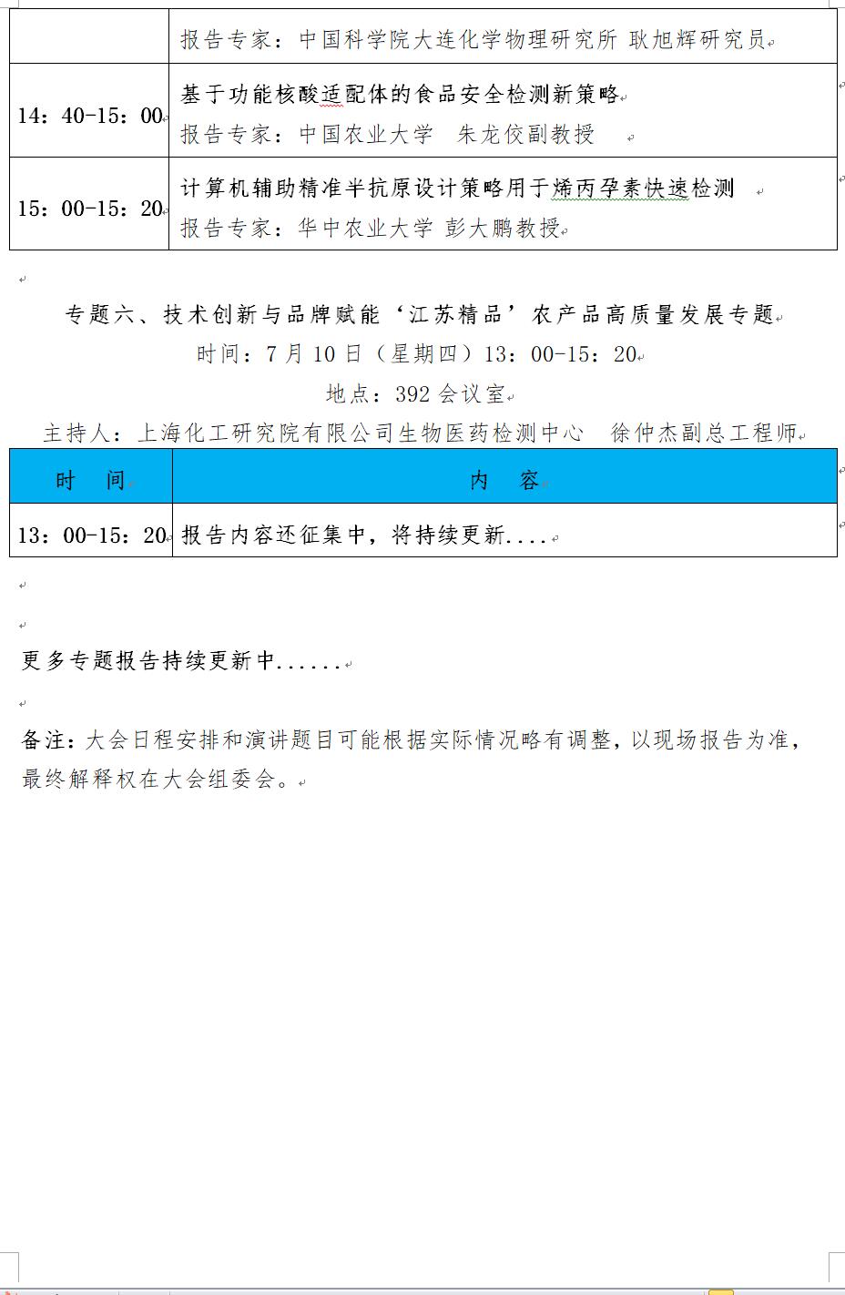 本屆CFAS大會將繼續秉承“交流、促進、安全、健康、營養”的主旨,展開系列學術研討與展示活動。論壇首日(7月9日)議程安排了20余場主題報告,次日(7月10日)聚焦農藥殘留檢測專題、快速檢測技術專題、重金屬及元素檢測技術專題、微生物及生物毒素檢測技術專題、基于新技術新原理開發的創新食品安全檢測方法專題以及“技術創新與品牌賦能‘江蘇精品’農產品高質量發展專題等核心議題,進行深入研討和經驗交流,以期形成廣泛學術共識,推動我國食品與農產品質量安全全產業鏈的發展。