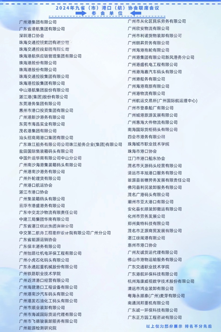 【前言】在國家“交通強國”戰(zhàn)略穩(wěn)步推進、“十四五”規(guī)劃邁向關(guān)鍵階段的當下,備受矚目的2025年九省(市)港口(航)協(xié)會聯(lián)席會議,正緊鑼密鼓地籌備著,將于12月1-4日在上海浦東綠地假日酒店(秀沿路1088弄)盛大啟幕。